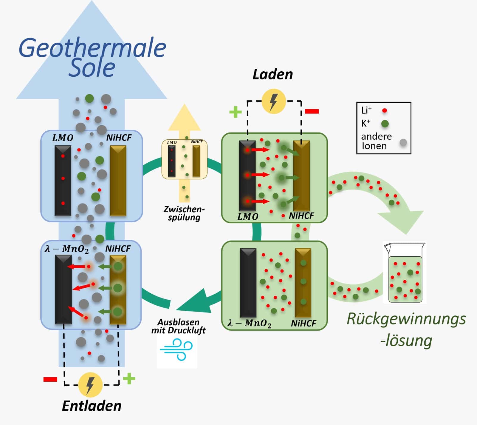 Das Projekt ThermIon zielt darauf ab, eine umweltfreundliche und wirtschaftlich attraktive Technologie zur direkten Lithiumgewinnung aus geothermalen Quellen zu entwickeln und zu demonstrieren. Der gesamte Prozess – von der Vorbehandlung der Sole über die Lithiumextraktion bis hin zur Rückführung der Sole – soll berücksichtigt werden. Zudem werden die Lithiumressourcen im Oberrheingraben mittels geohydrologischer Untersuchungen und Simulationen auf Nachhaltigkeit und Wirtschaftlichkeit geprüft.